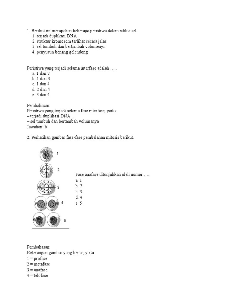 Biologi sma / smk dibagikan oleh laode ilham. Berikut ini kumpulan soal saintek beserta pembahasannya. Seorang siswa tengah mengamati proses pembelahan sel pada akar bawang. Latihan soal pembelahan sel mitosis dan meiosis, beserta pembahasannya. Berikut adalah tahapan pembelahan mitosis.